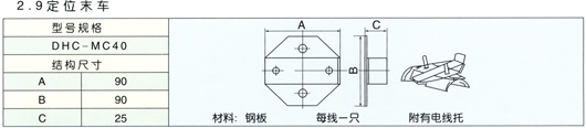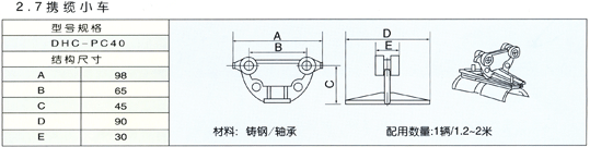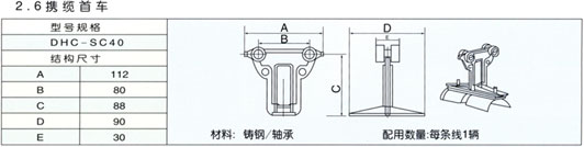 DHC系列電纜車線由滑軌(C型槽管)、支架、懸吊夾、連接夾套、攜纜首車、攜纜小車、撥叉、定位末車、封頭等組成。該系列產(chǎn)品平整美觀、安全可靠,安裝簡捷,適用于有防爆技術(shù)要求和一切必需用軟電纜移動供電的系統(tǒng),如煙草、水廠、港口、礦山等部門。